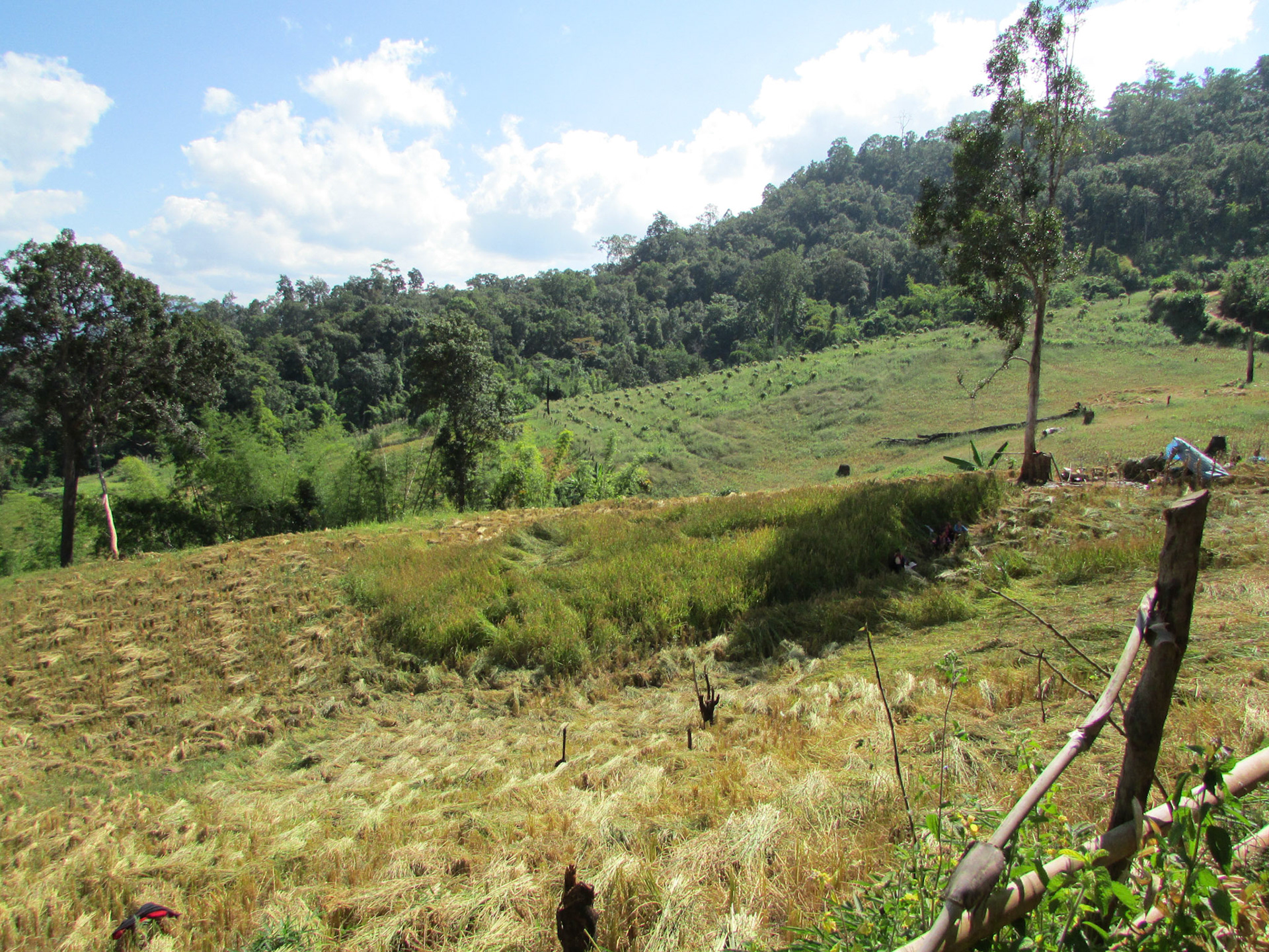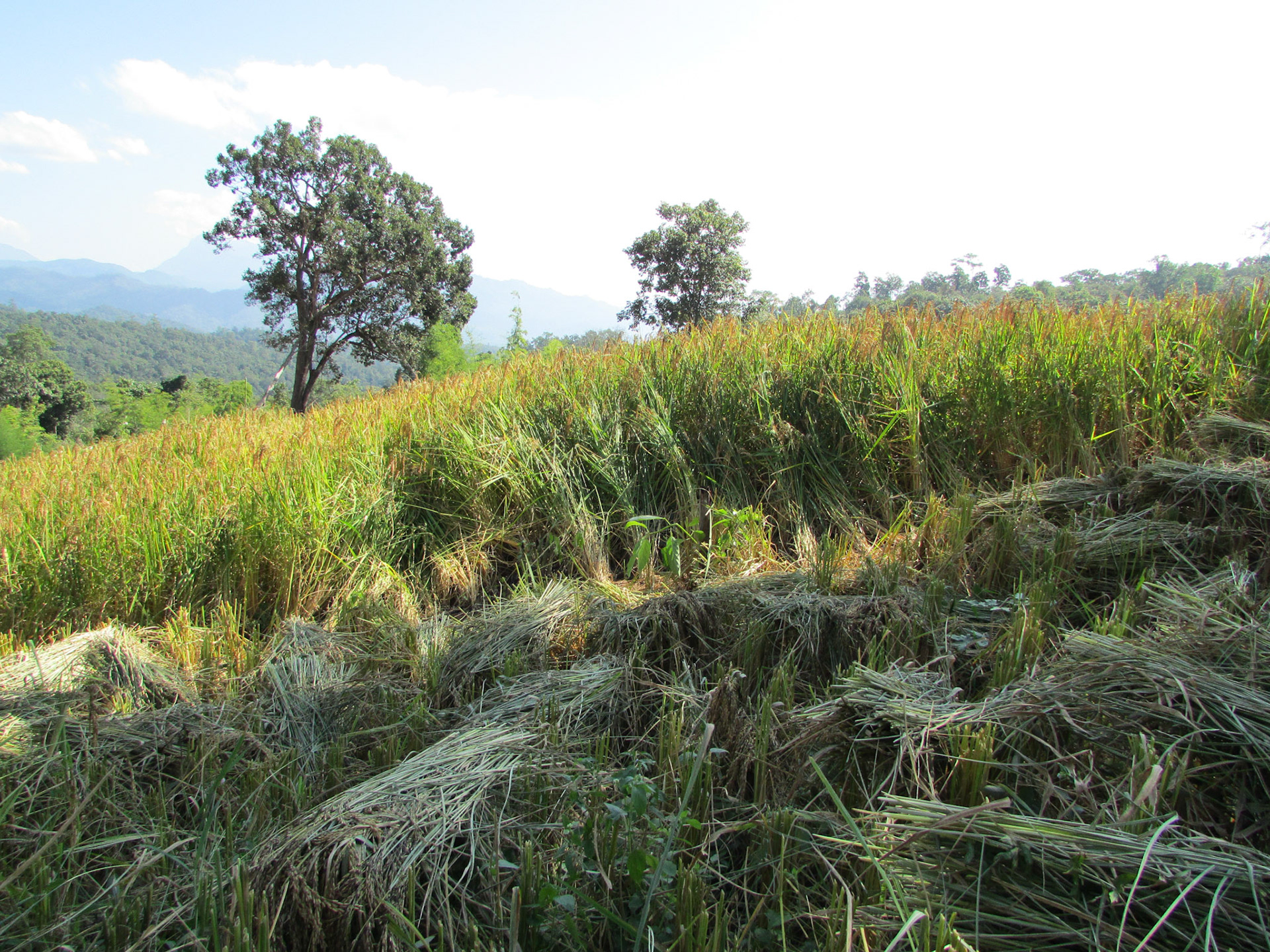 Rice bunches to dry before the next step, separating the grain from the chaft, some winnowing after the beating!
